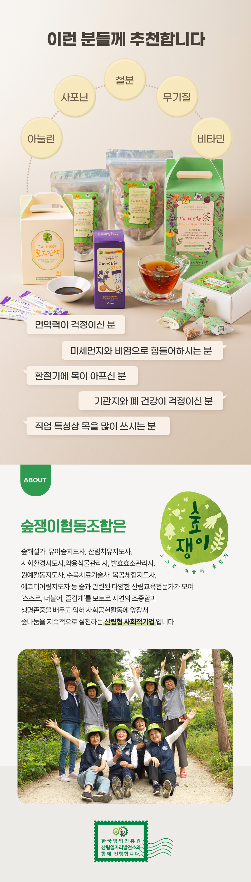 | 원재료 함량 | 대추(국내산) 40%, 더덕(국내산) 10%, 도라지(국내산) 10%, 생강(국내산) 10%, 둥굴레(국내산) 10%, 맥문동뿌리(국내산) 5%, 계피 5%, 감초(국내산) 5%, 박하잎(국내산) 5%, 비트레드(국내산) 2% | ||