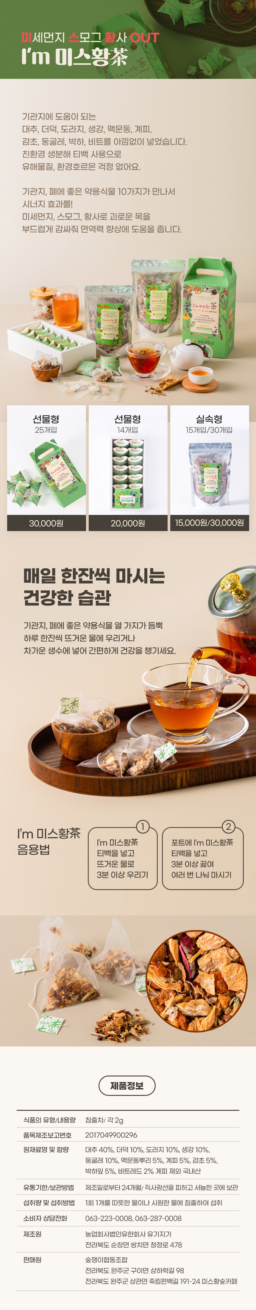 | 제품명 | 숲쟁이협동조합 미스황차 선물용 25개입 21 / 250 | ||